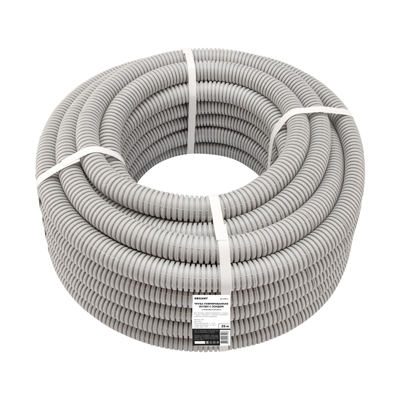 Труба гофрированная из ПВХ с зондом Ø 32 мм (бухта 25 м/уп.) REXANT предназначена для одиночной прокладки в них скрытым, полускрытым и открытым способами в стационарных электроустановках бытового и аналогичного назначения, эксплуатируемых как внутри помещений, так и на открытом воздухе электрических, телефонных, компьютерных и телевизионных сетей. Работающих при электрическом напряжении постоянного или переменного тока величиной не более 1000 Вольт.