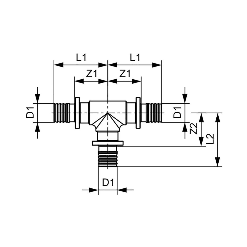 Тройник, TECE, TECEflex, 90* редукционный, 20 х 16 х 20, бронза