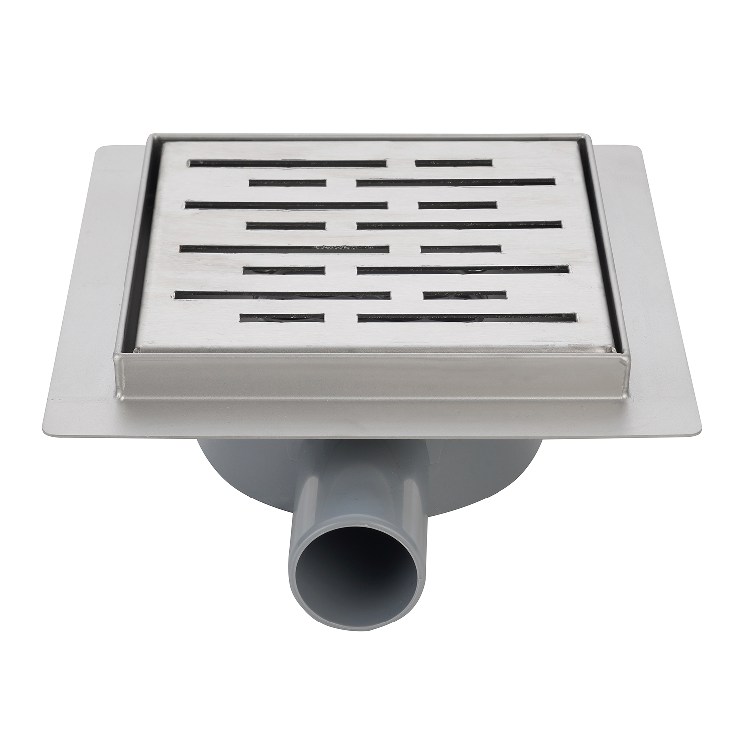 Трап для душа AZARIO 150х150 цельнометаллический, перфорированная решетка, горизонтальный выпуск (AZZ1150)