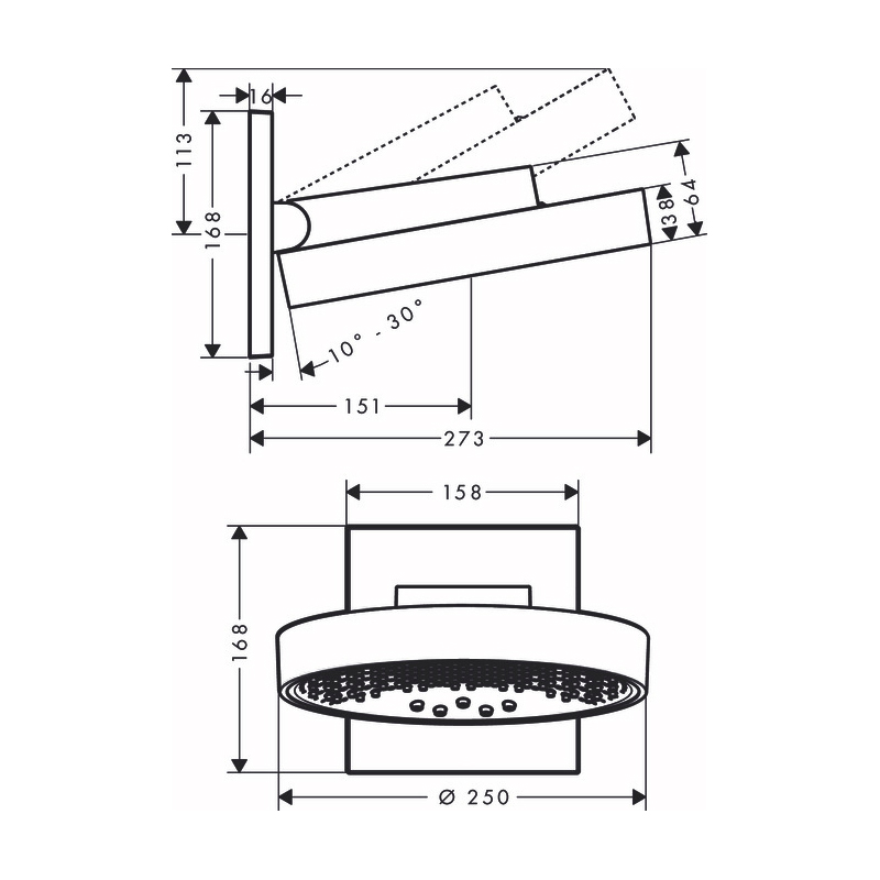 Верхний душ Hansgrohe Rainfinity 250 3jet, с настенным креплением, хром