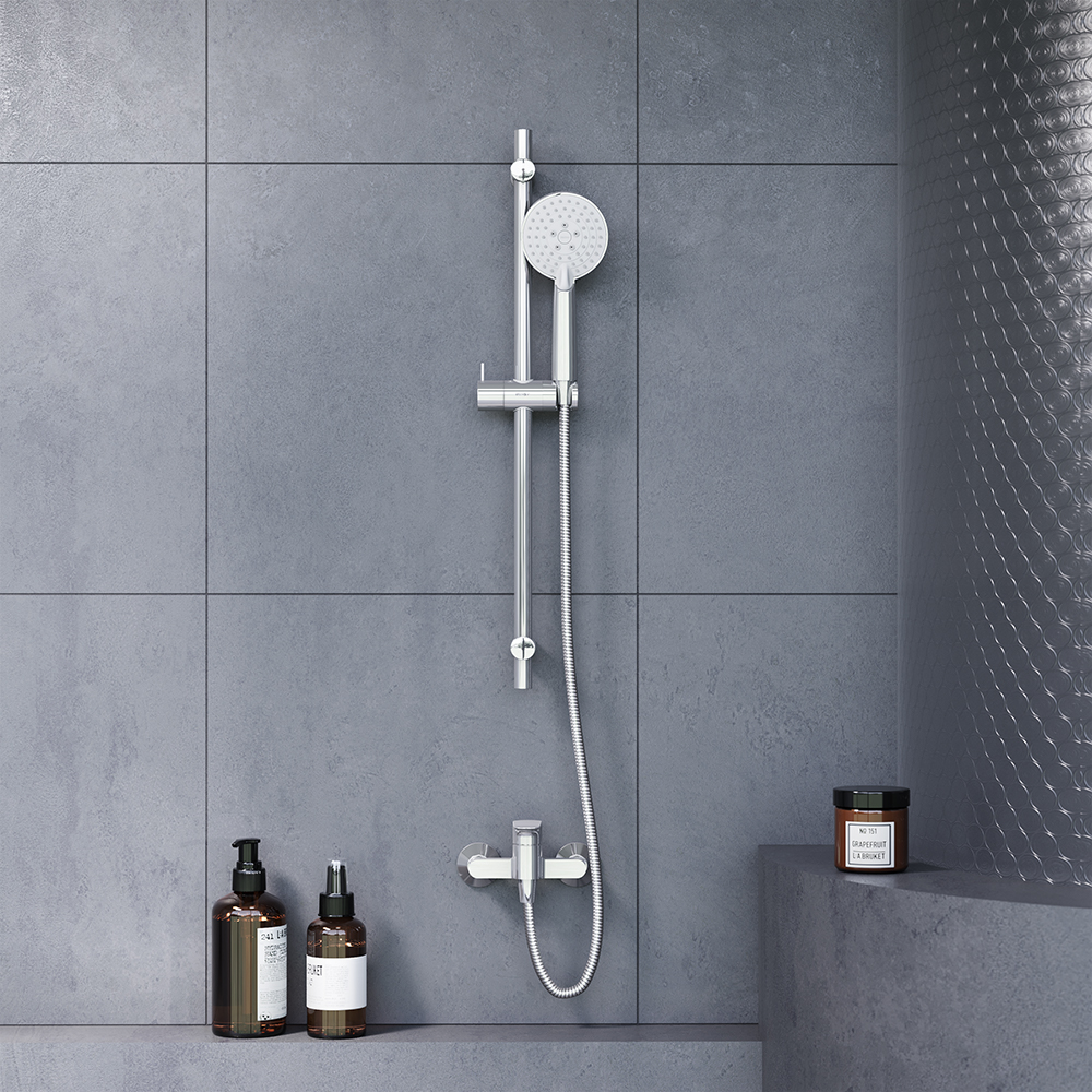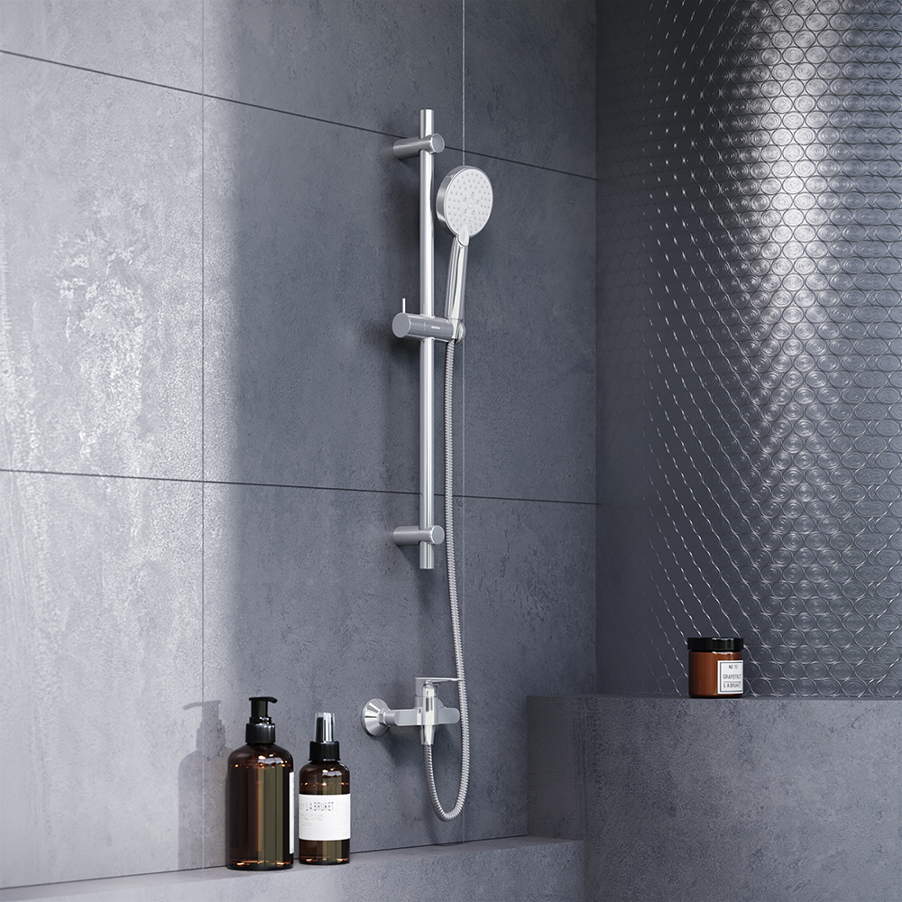 В комплекте поставки: душевая штанга, шланг, ручной душ.