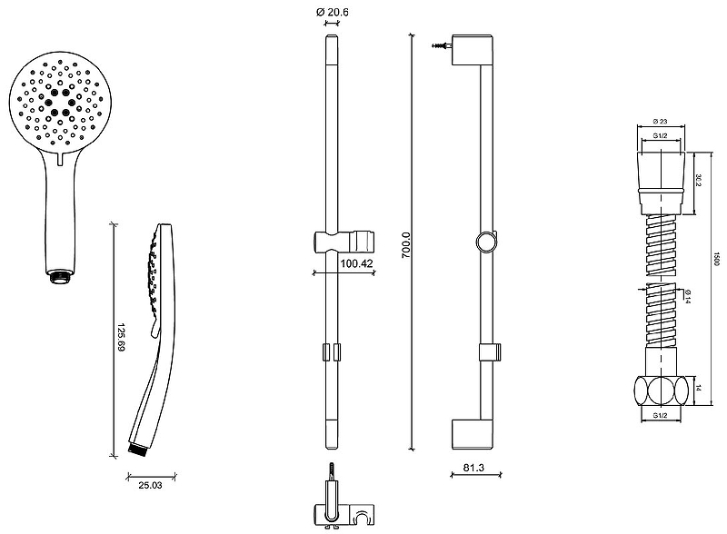 Настенный душевой гарнитур Jacob Delafon Salute E32907-CP с антиизвестковым покрытием.