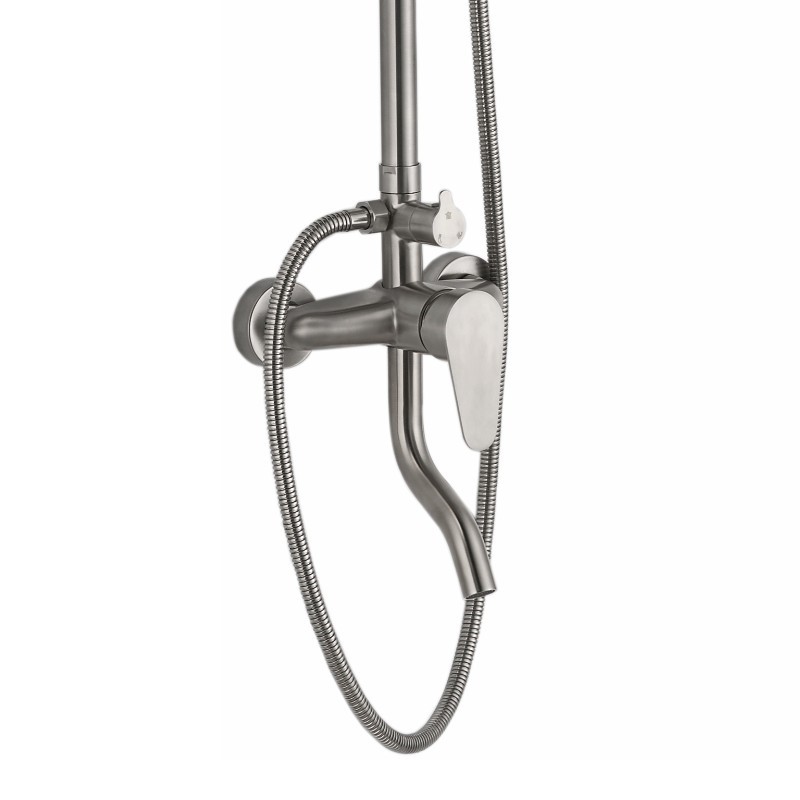Душевая система Haiba. Изготовлена из высококачественной нержавеющей стали. Прекрасный тропический душ. Излив для наполнения ванны. Душевая штанга регулируется по высоте от 88,2 см до 153,2 см.