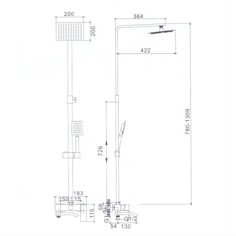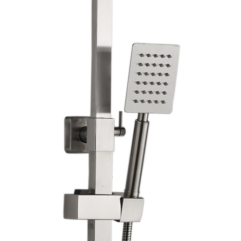 Душевая система Haiba. Изготовлена из высококачественной нержавеющей стали. Прекрасный тропический душ. Излив для наполнения ванны. Душевая штанга регулируется по высоте от 78 см до 131 см.
