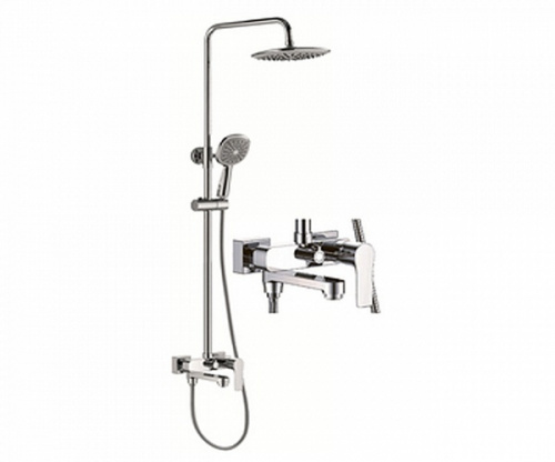 В комплекте 1- режимная душевая лейка, 1-режимный тропический душ, изготовленный из современной прочной пластмассы с никель-хромированным покрытием, душевая штанга раздвижная, держатель душевой лейки поворотный, душевой шланг с латунными гайками 150см, смеситель, индивидуальный пакет, паспорт, гарантийный талон.