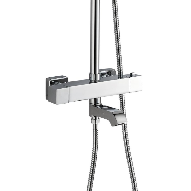 Душевая система с термостатом Haiba. Изготовлена из высококачественной латуни. Прекрасный тропический душ. Излив для наполнения ванны. Душевая штанга регулируется по высоте от 93,1 см до 153,1 см.
