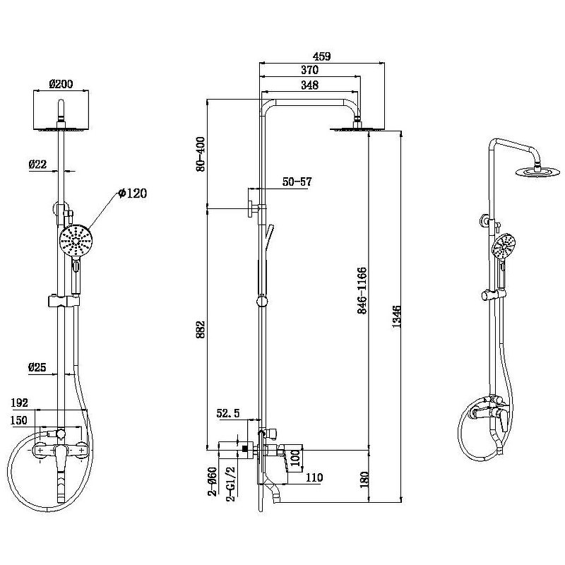 - Форма верхнего душа: круглая.