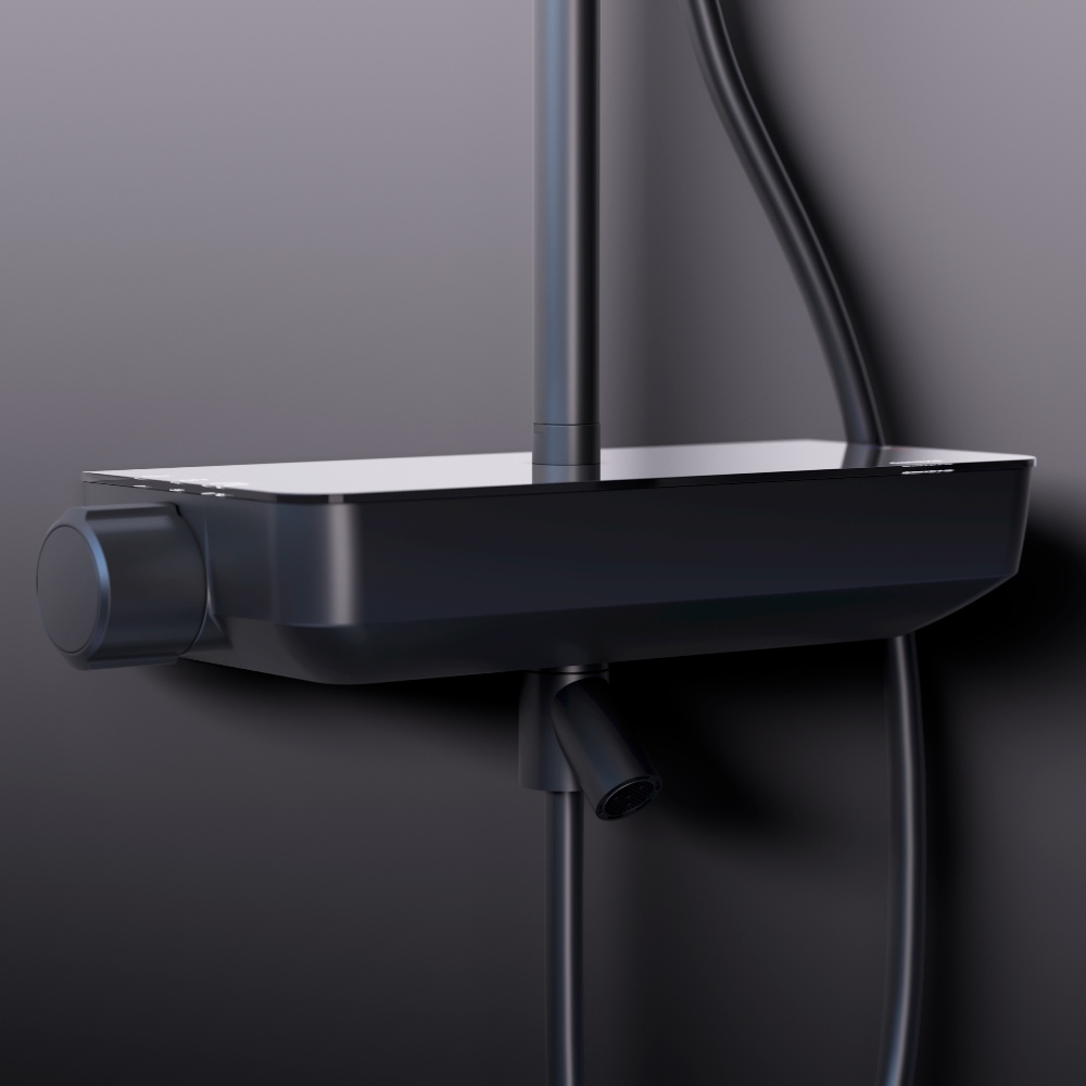 936730300 Scandinavian Pure душевая система с ванно-душевым смесителем-полкой, черный