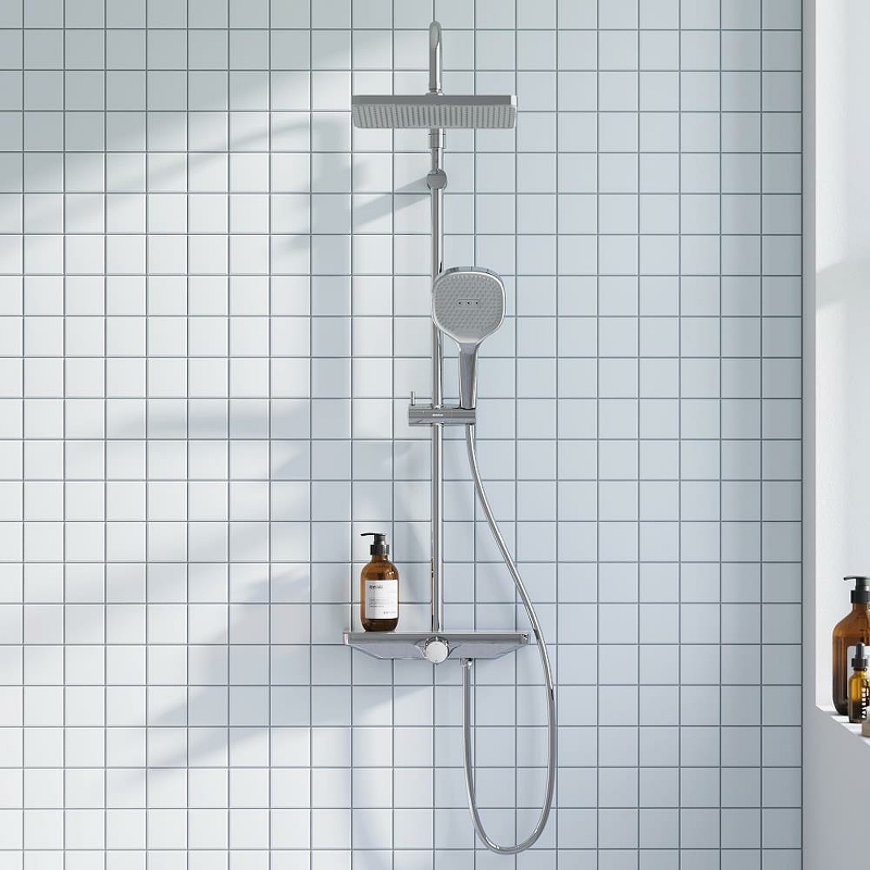 940730000 Merkur душевая система с ванно-душевым смесителем-полкой и прогрессивным картриджем, хром