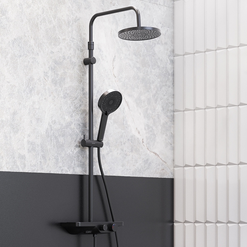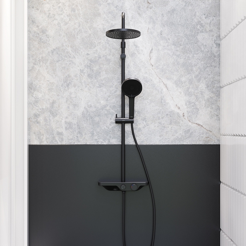 947730300 Apollo душевая система с ванно-душевым смесителем-полкой, черный