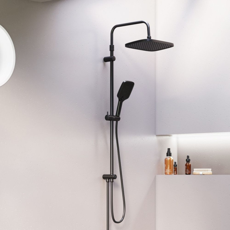 953000300 Gala душ.система: верх.душ 300*210 мм, ручн.душ 3 ф-ции 110*260 мм, штанга 1050-1450, черн
