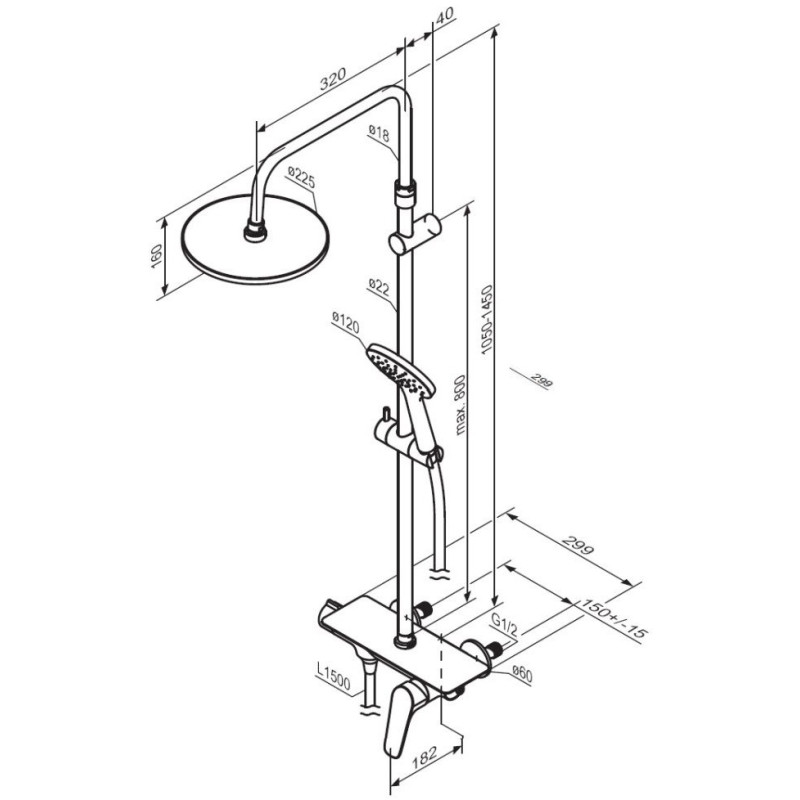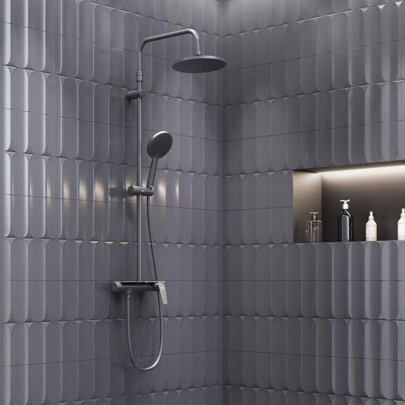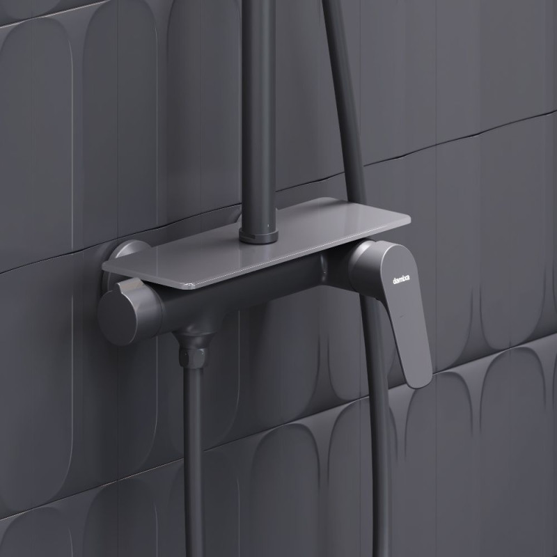 977780300 Jupiter душевая система с душевым смесителем-полкой, чёрный