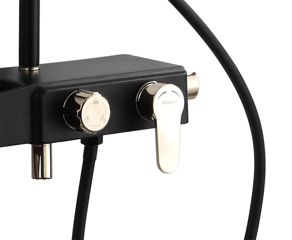 Душевая система AZARIO с поворотным изливом, керамический картридж, черный/золото (AZ-801-2)