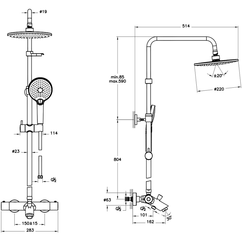 Душевая система 220 мм VitrA Aquaheat Joy A47208EXP
