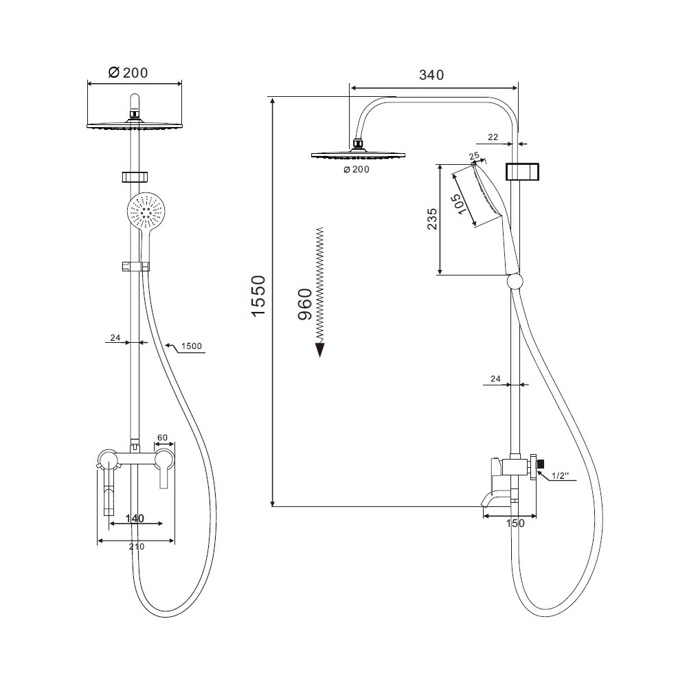 Верхний душ регулируется как по высоте, так и по углу наклона, позволяя настроить его под индивидуальные предпочтения каждого члена семьи.<br />