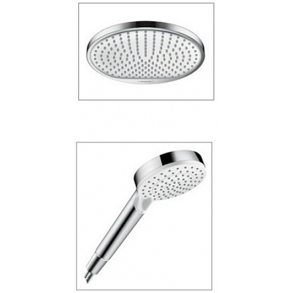 HG Crometta S Душевая система Showerpipe: верх.душ 240 1jet, ручн.душ, шланг, EcoSmart, цвет: белый/хром