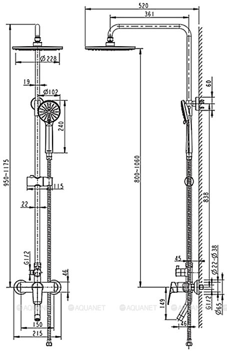 Душевая стойка Bravat Rhein F6429564CP-A-ENG