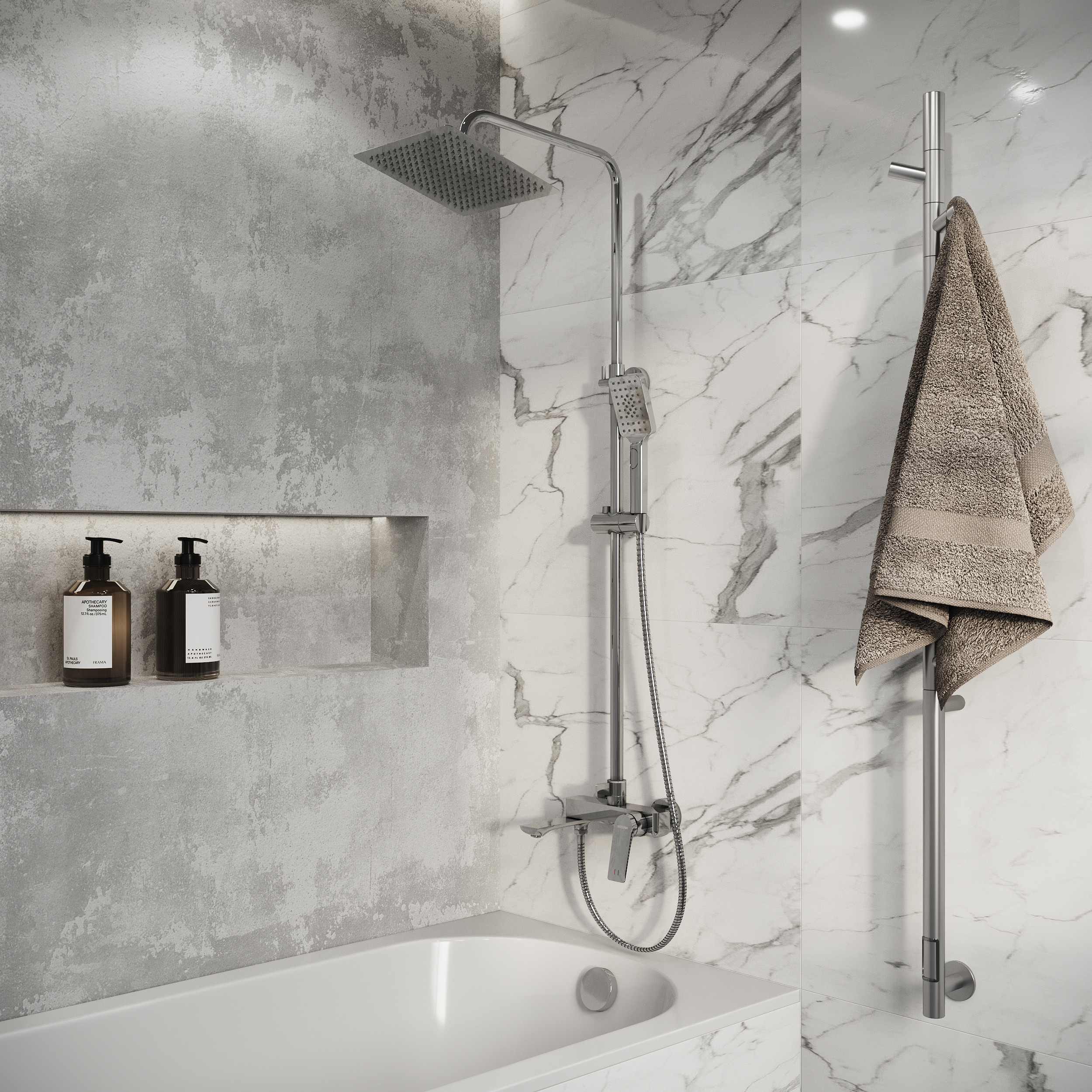 Эта душевая стойка станет стильным и функциональным дополнением вашей ванной комнаты, даря вам ощущение комфорта и уюта.