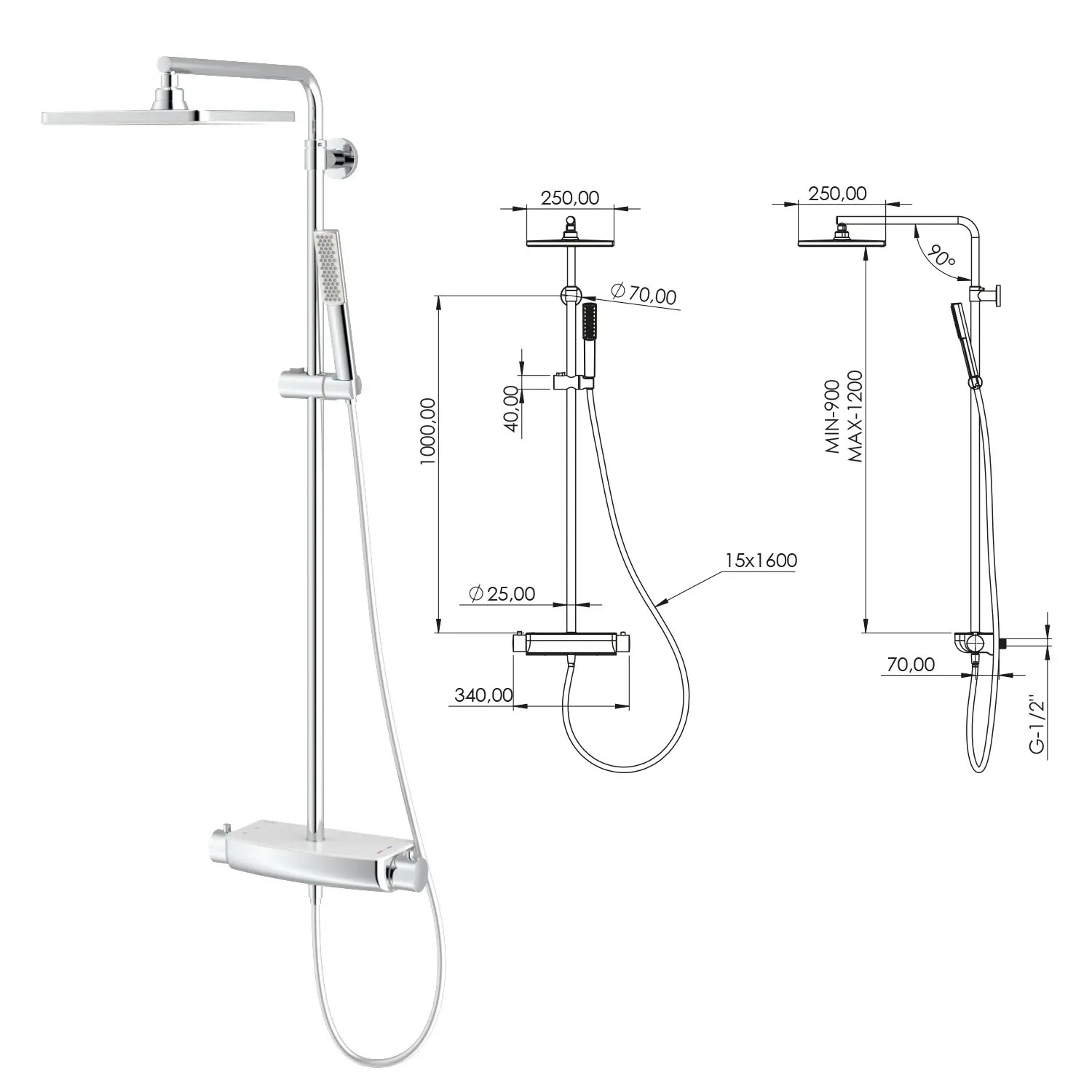 Душевая стойка Mira с термостатом, белое стекло