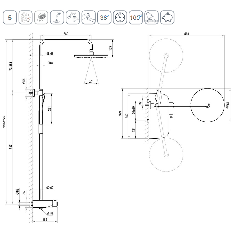 - Функция Air позволяет подавать воздух в душ. Это позволяет достичь более приятного ощущения воздействия воды на кожу и одновременно экономить ее.