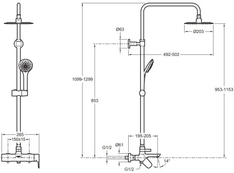 Душевая система 203 мм Jacob Delafon Aleo E97825RU-4-CP