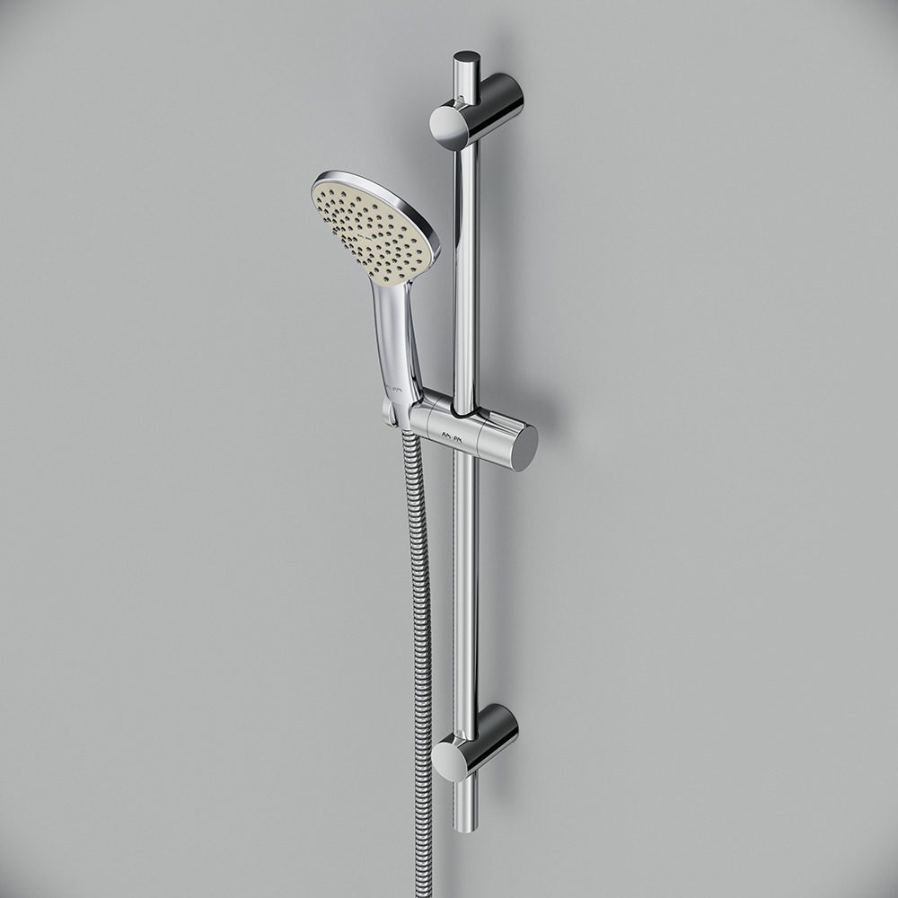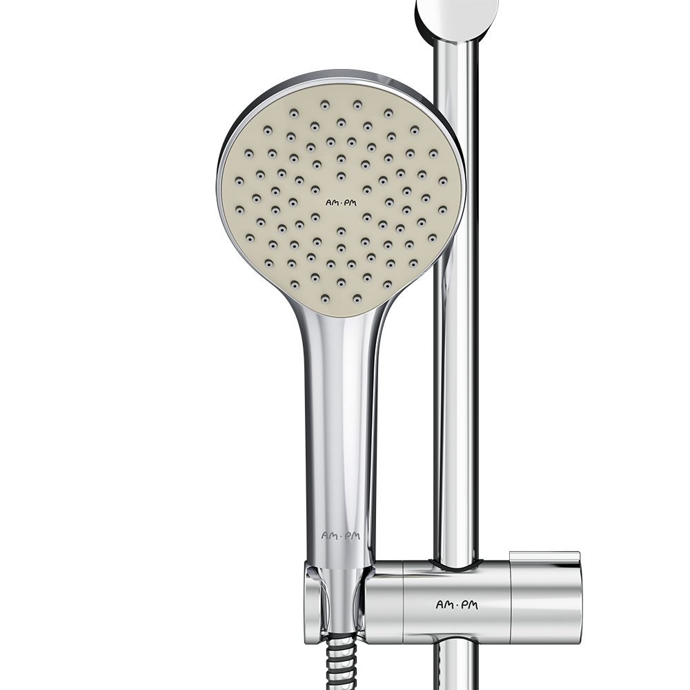 Продуманные детали для удобства использования: шарнирное соединение защищает душевой шланг от перекручивания регулируемый в трех плоскостях держатель ручного душа функция Rub&Clean для легкой очистки душевых форсунок.