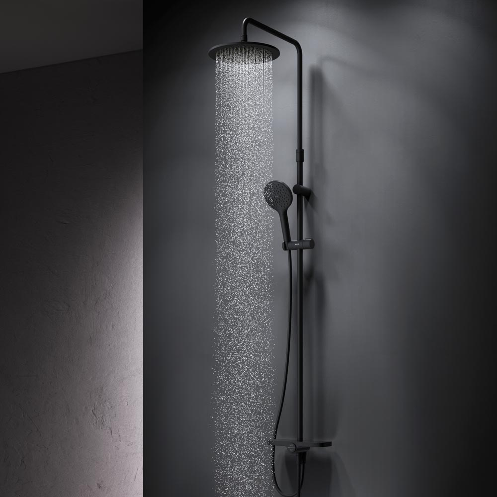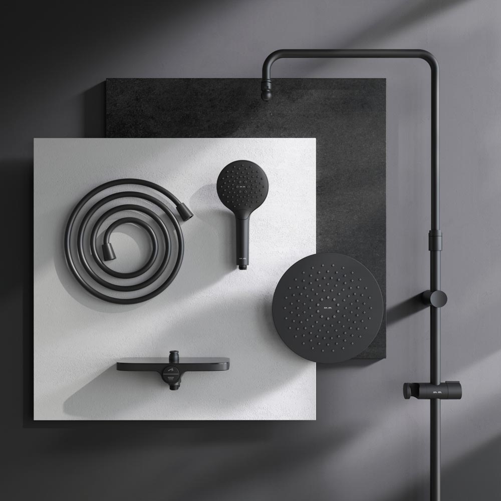 Тотальный дизайн в действии: все детали душевой системы – от пропорций ручного и верхнего душей до рисунка расположения форсунок на лейках.