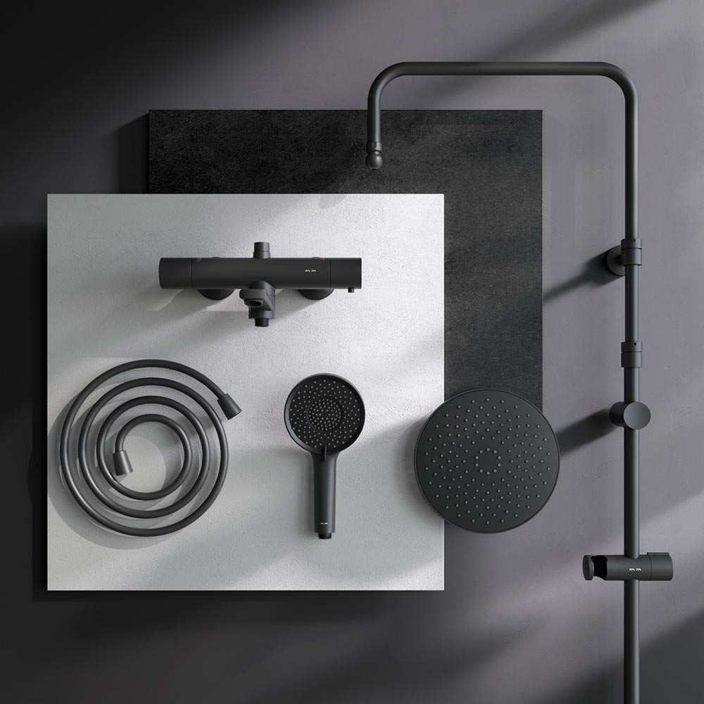F0785A522 X-Joy, душ.система: см-ль д/ванны/душа с ТМС, душ.штанга,верхний душ 220мм, ручн душ,черн
