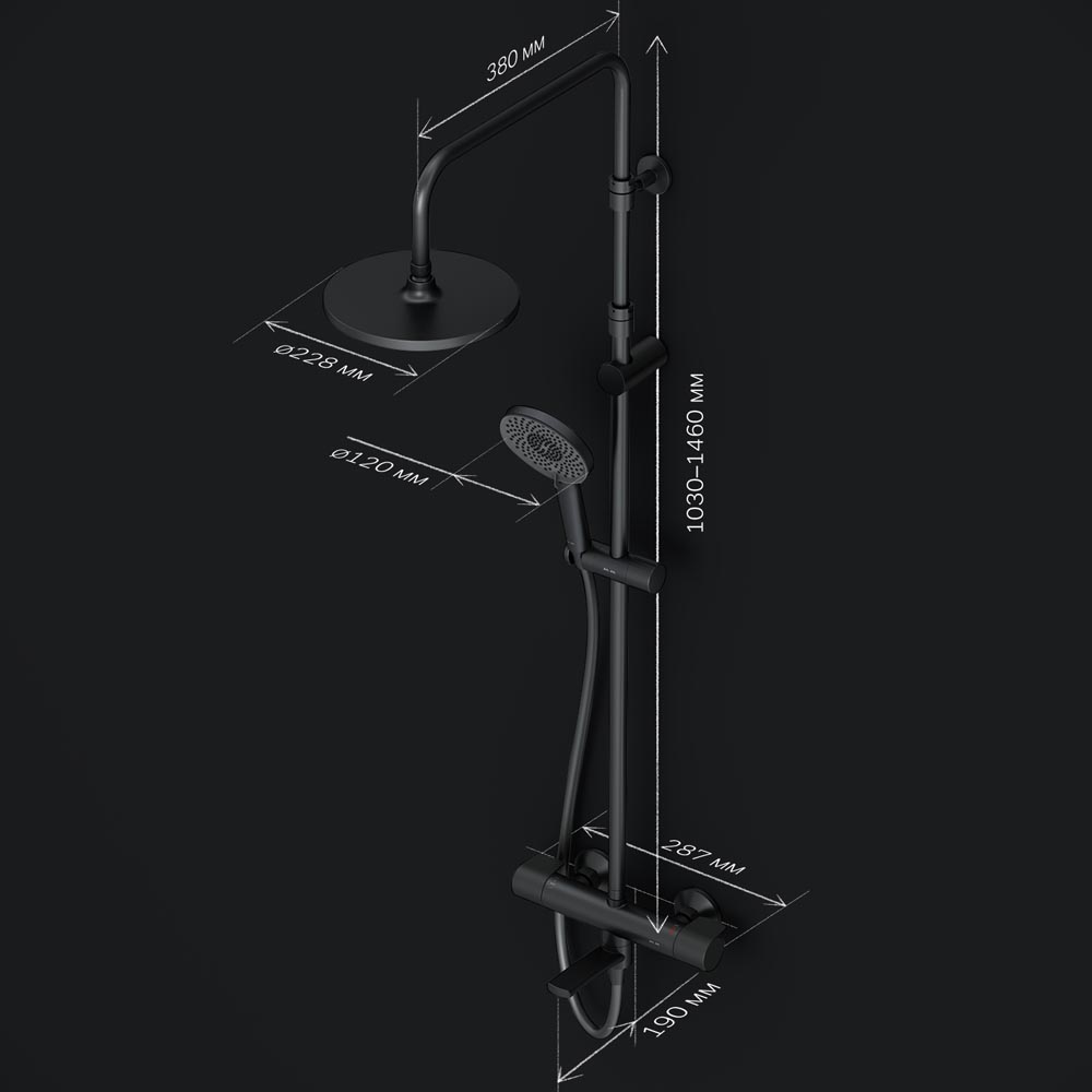 <li>Высота душевой штанги: 1030-1460 мм.</li>