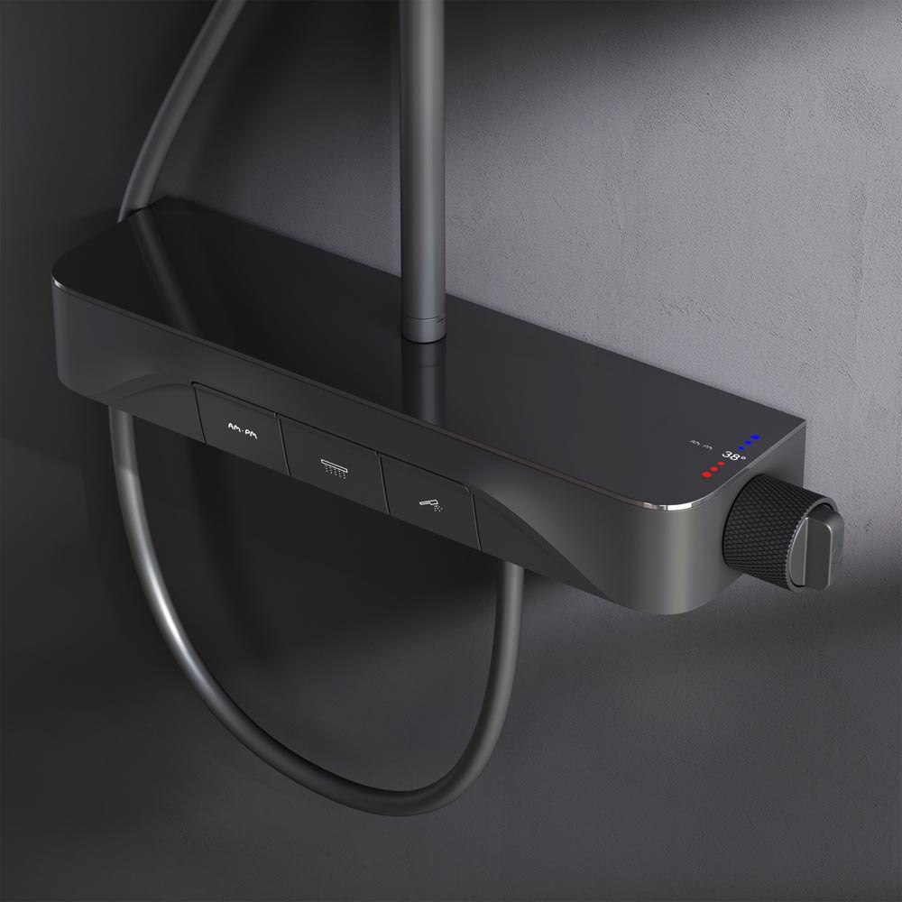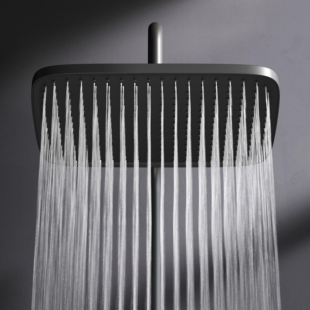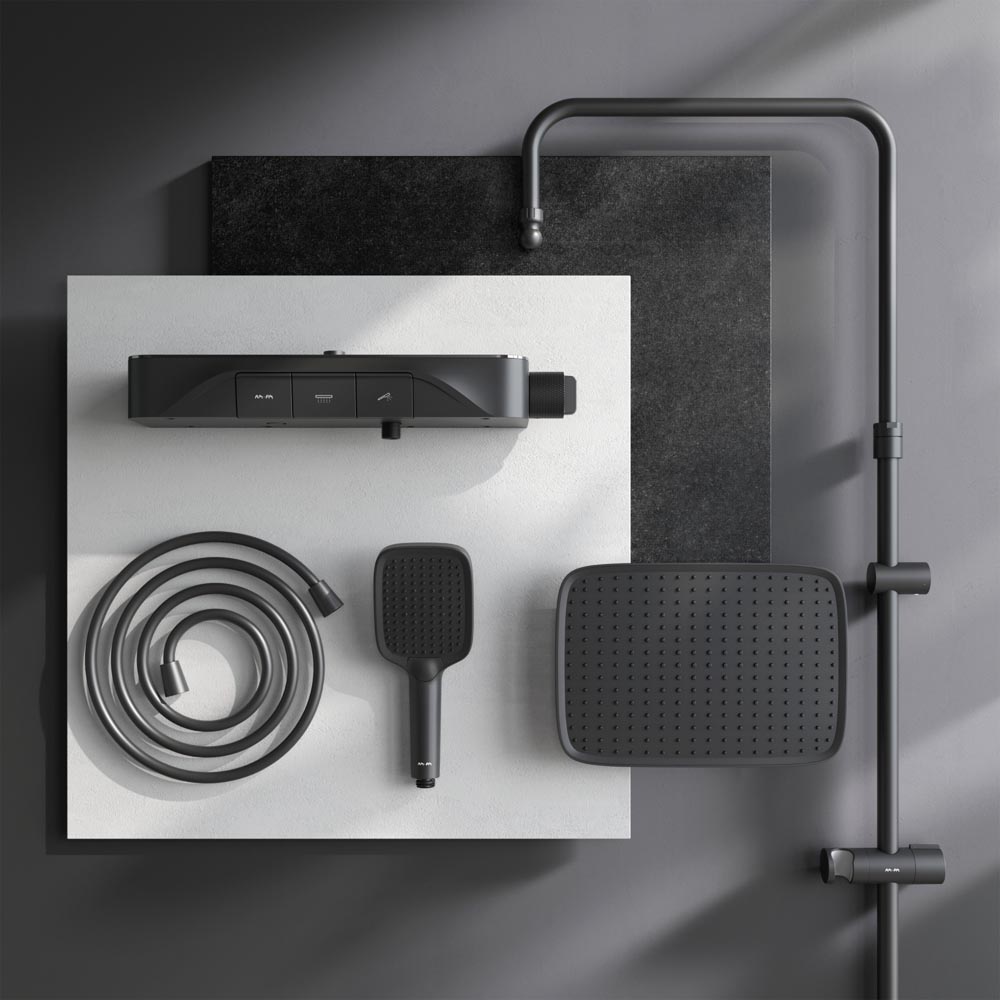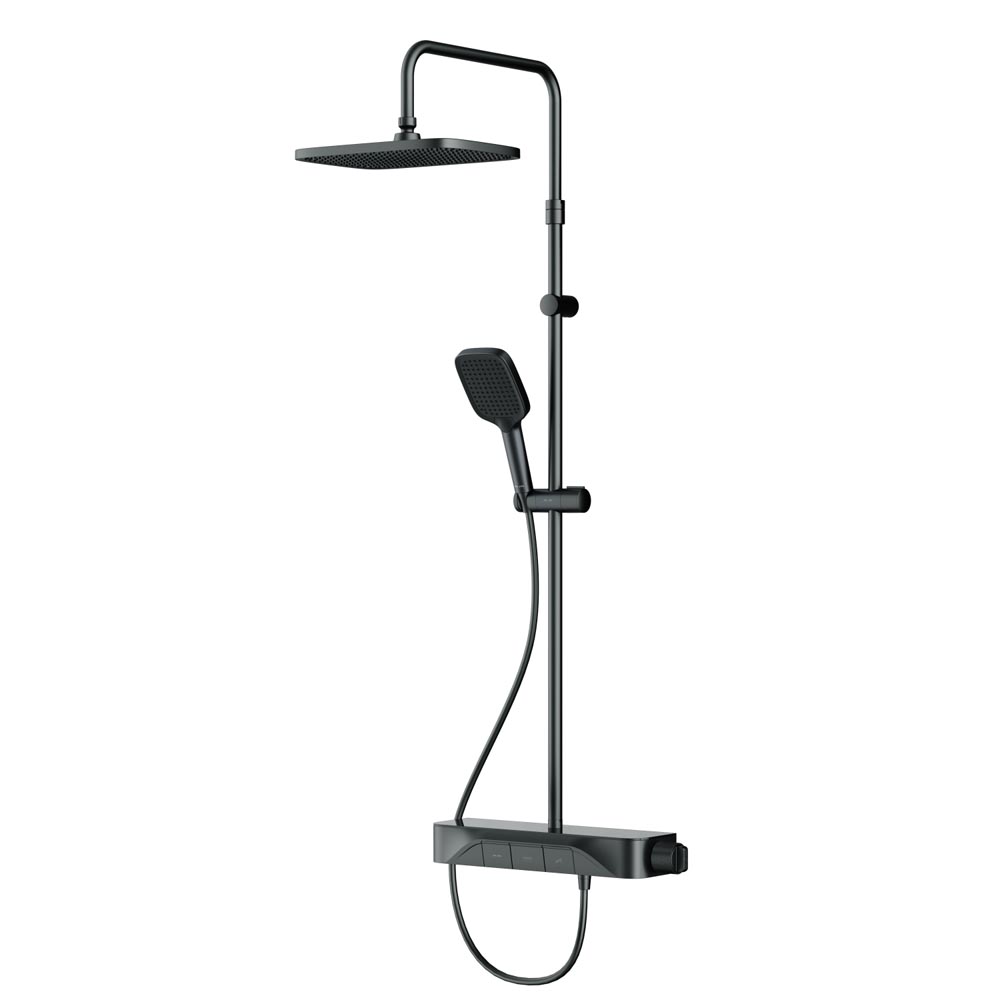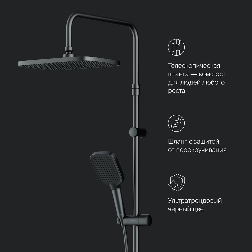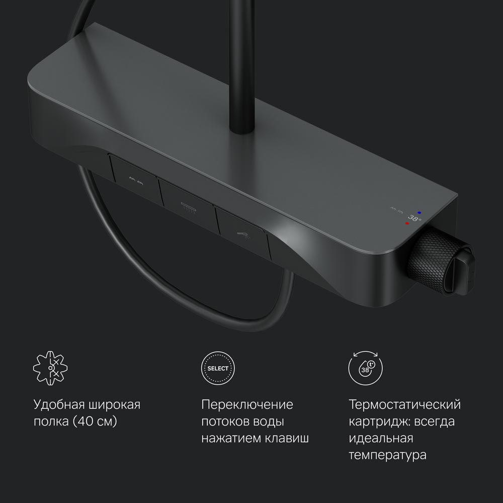 F078F222 Func, душ. система: см-ль-полка д/душа с ТМС: душ.штанга, верхн. душ квадр., ручн.душ, черн