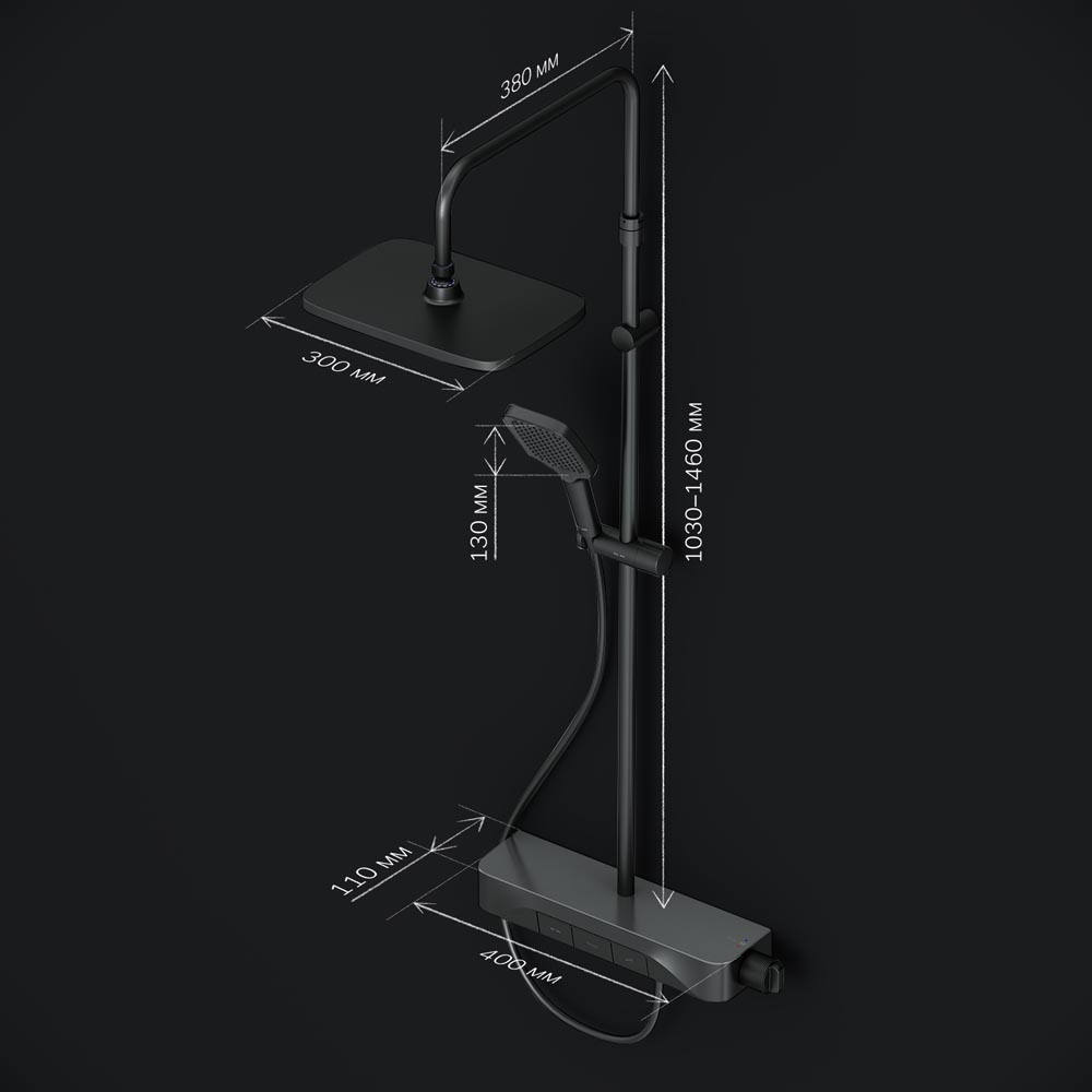 <li>Высота душевой штанги: 1030-1460 мм.</li>