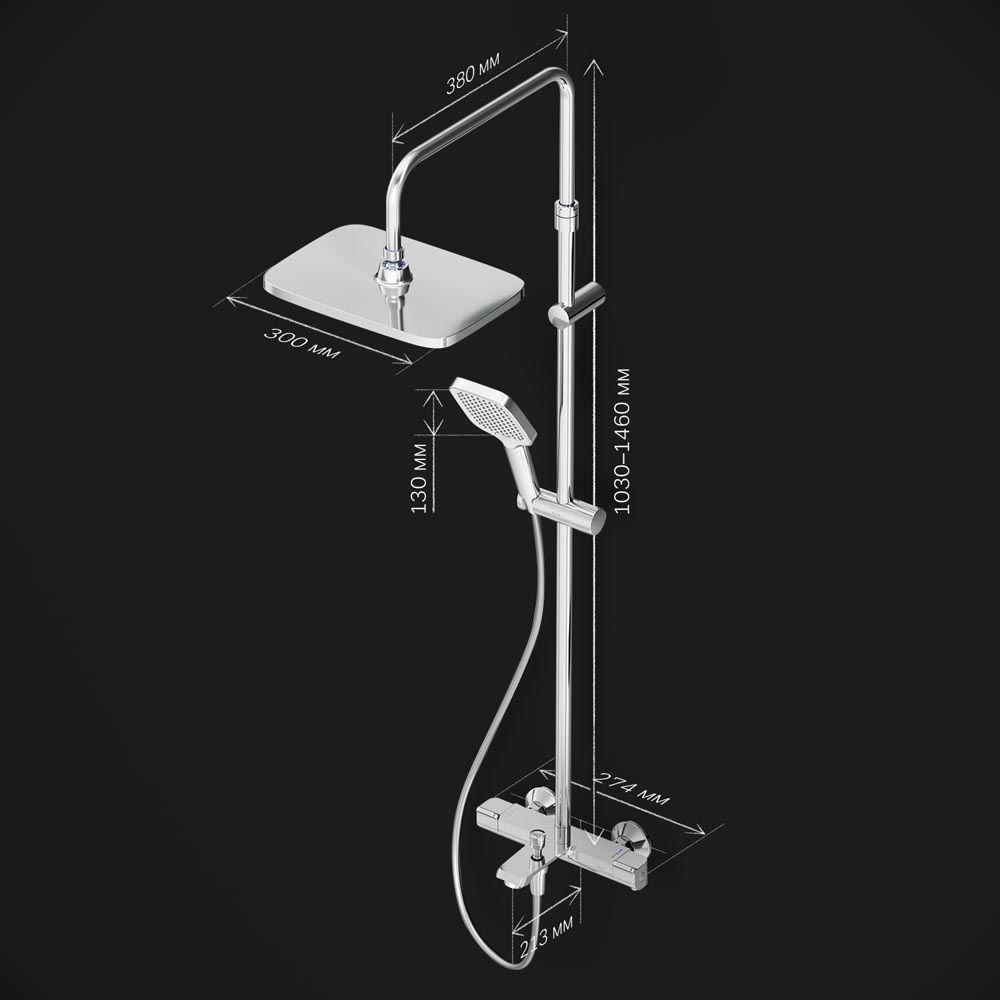 <li>Высота душевой штанги: 1030-1460 мм.</li>