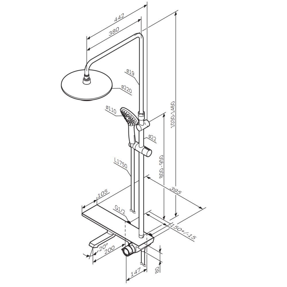 Диаметр душевых леек (верхний душ 220 мм и ручной душ 110 мм) позволит ощутить преимущества тропического душа даже в стандартной ванной, тогда как увеличенная длина шланга 1750 мм обеспечит свободу движений во время принятия душа;