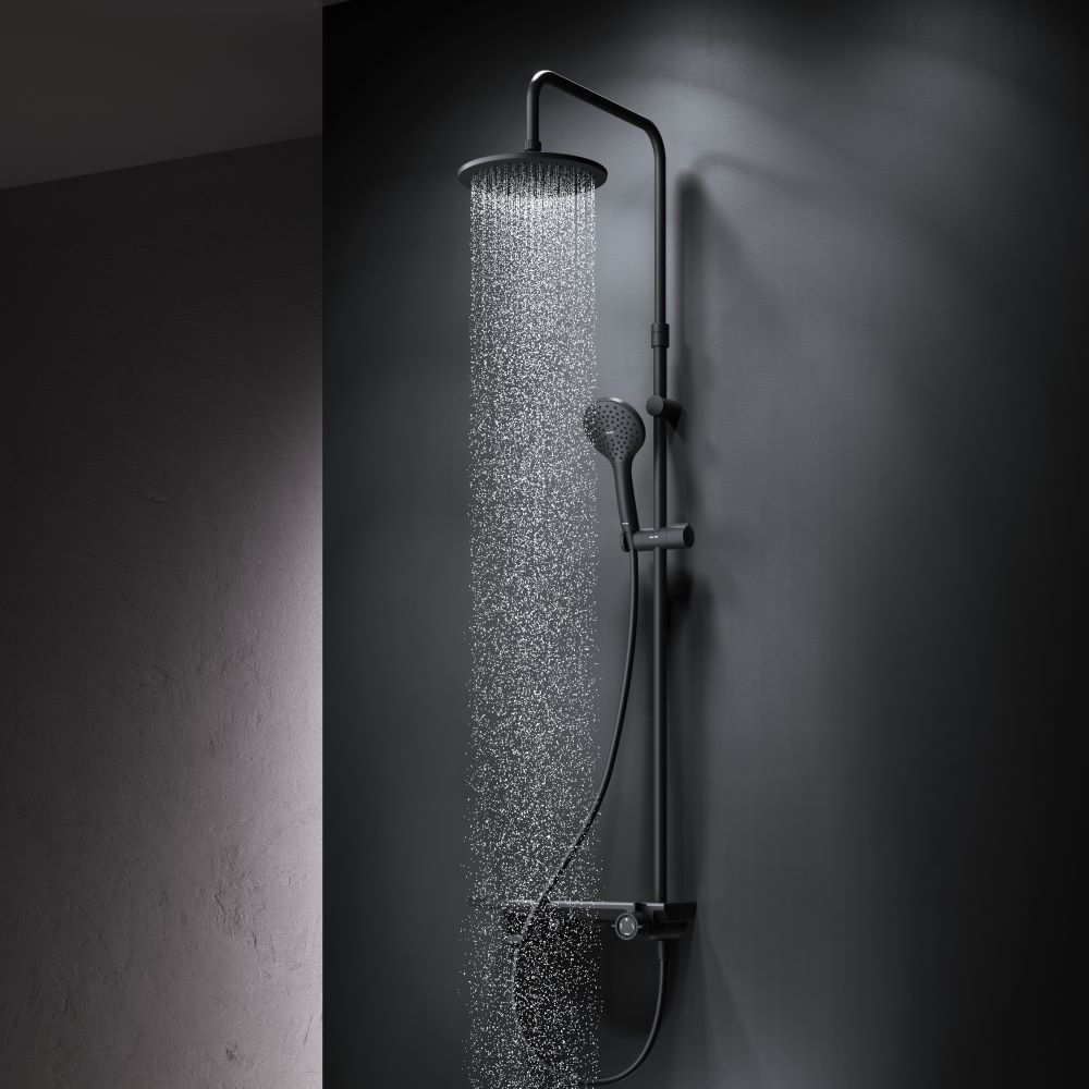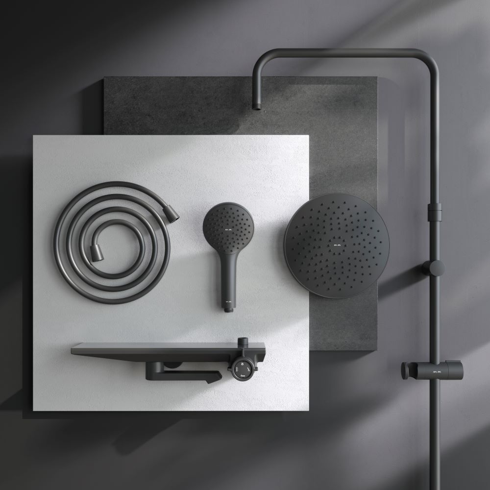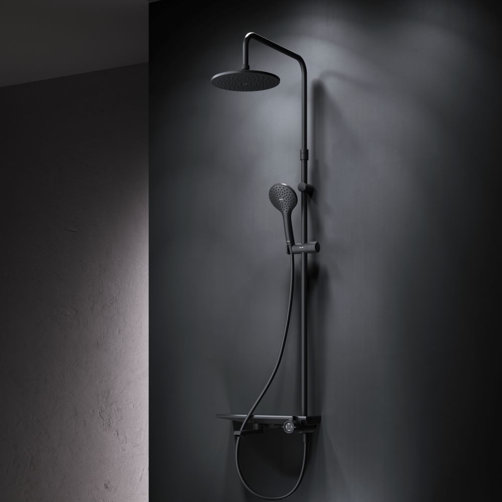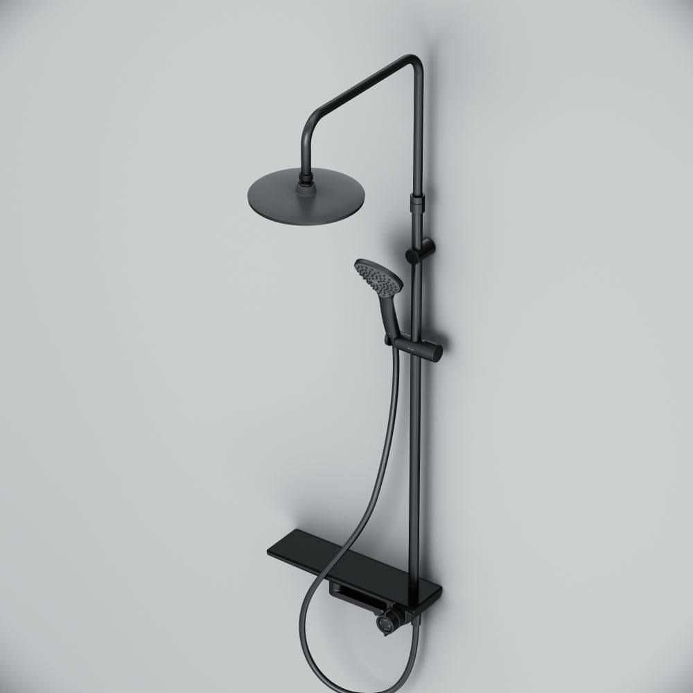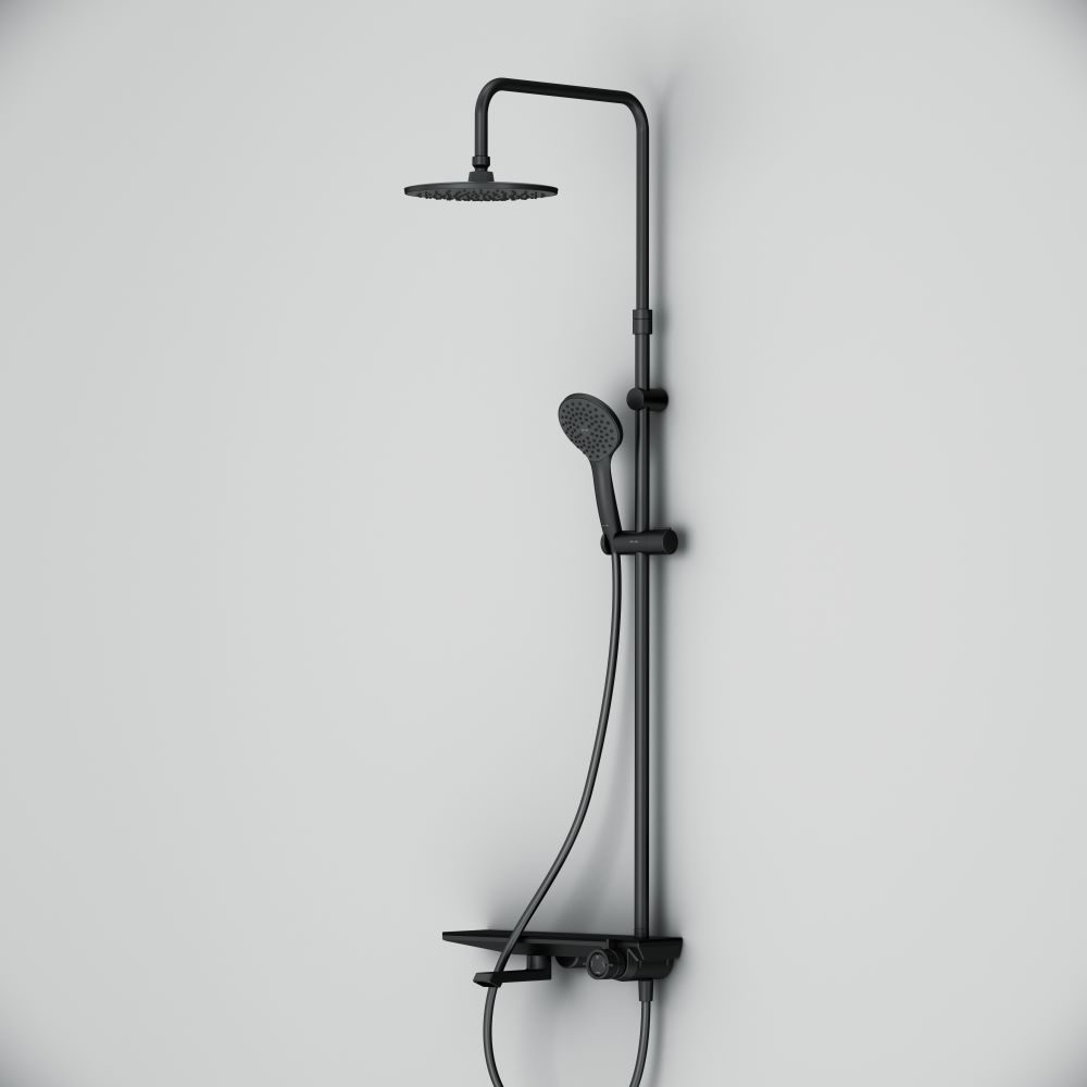 F0790722 Gem, душ.система: см-ль-полка д/ванны/душа, душ.штанга, верхн. душ 220мм, ручн.душ, черн