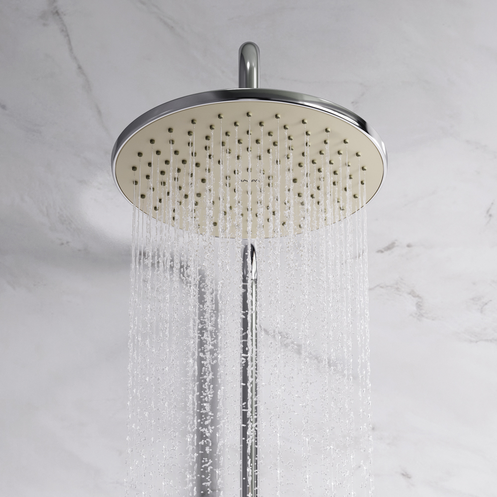 Легкость и простота установки душевой системы. Регулируемая штанга душа по высоте от 1030 до 1460 мм позволит установить верхний душ индивидуально под свой рост. Технология Rub&Clean поддерживает чистоту форсунок. Проведите один раз пальцем по поверхности и форсунки станут чистыми. Увеличенный диаметр верхнего и ручного душа помогут ощутить преимущества дизайнерской душевой системы. Душевой шланг длиной 1750мм с защитой от перекручивания даст возможность свободно чувствовать себя при принятии душа.