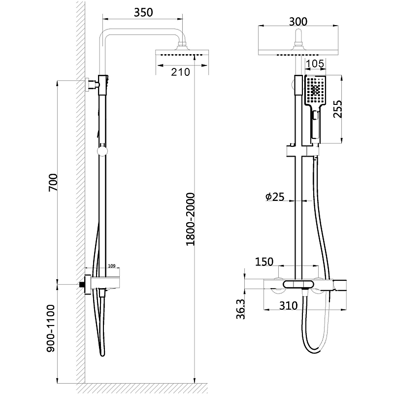 <li>Размер верхнего душа (ШхД): 300х210 мм.</li>
