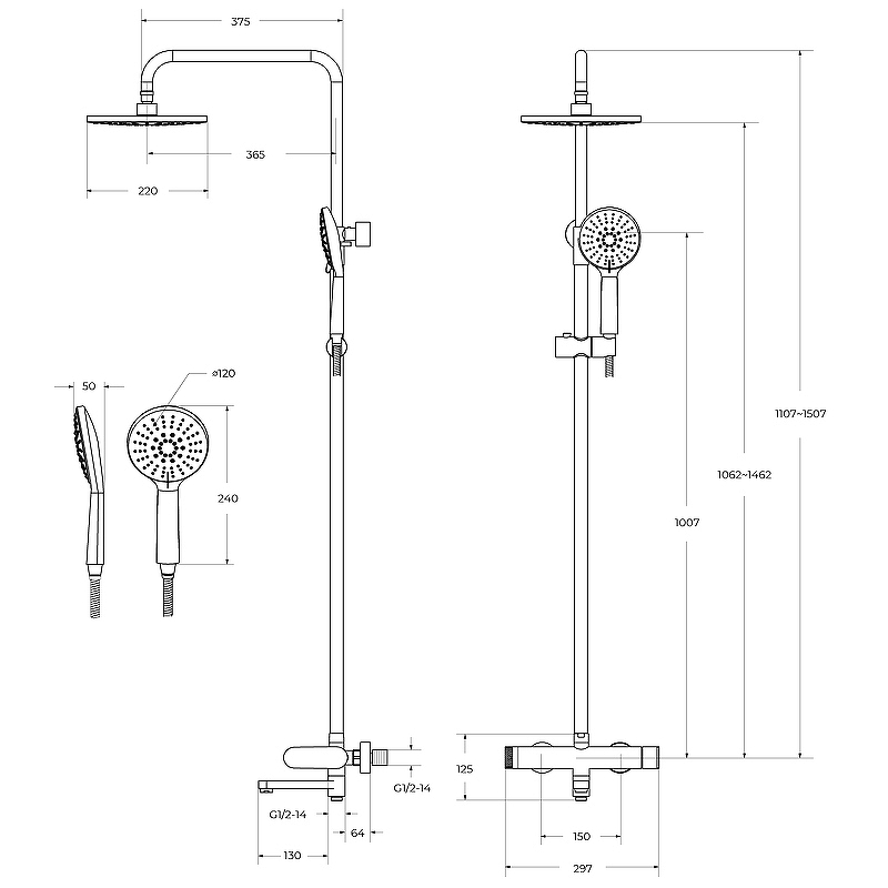 - Душевой шланг из ПВХ длиной 1500 мм.