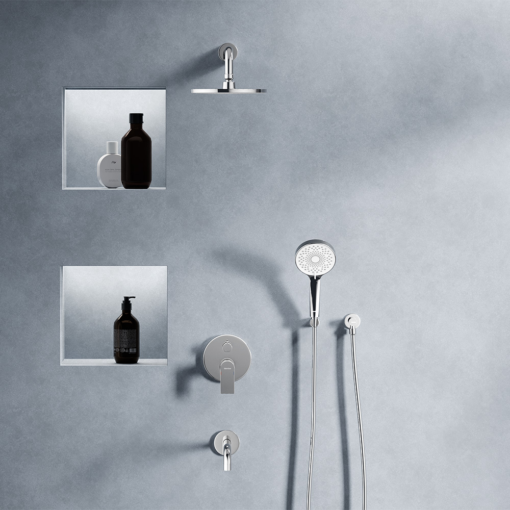 Встраиваемая душевая система из коллекции Apollo станет центром притяжения ванной комнаты. Тонкие линии и четкие грани в сочетании с массивными формами создают исключительную коллаборацию стиля.