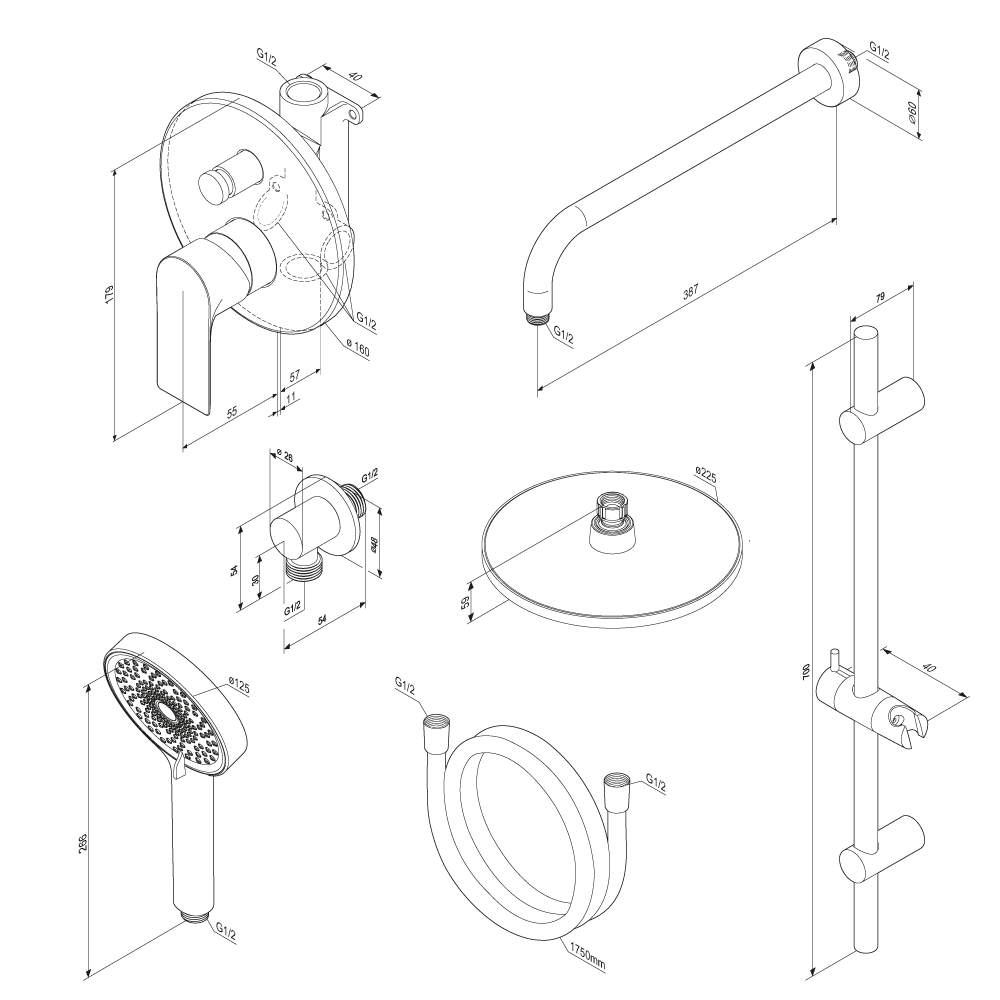 160 / 60 / 225 / 40 / 48 / 125 мм |