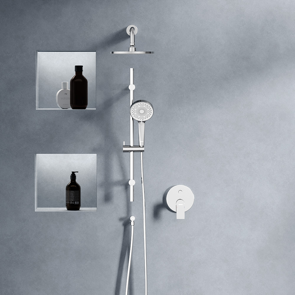 Встраиваемая душевая система из коллекции Apollo станет центром притяжения ванной комнаты. Тонкие линии и четкие грани в сочетании с массивными формами создают исключительную коллаборацию стиля.