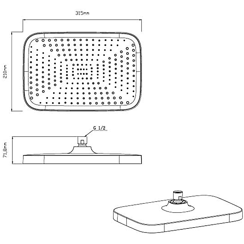 <li>Размер верхнего душа (ШхВхД): 315х72х210 мм.</li>