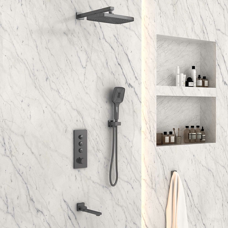 Душевая система Vincea VSFW-433T1GM с термостатом Вороненая сталь