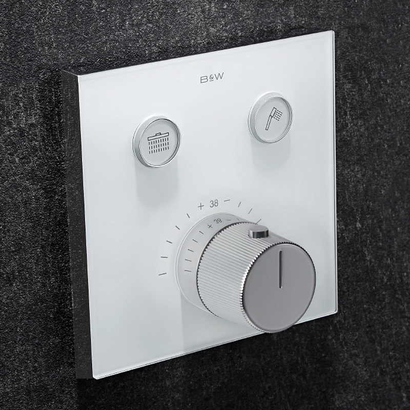 - Материал: латунь EN 59-1, белое закаленное стекло.