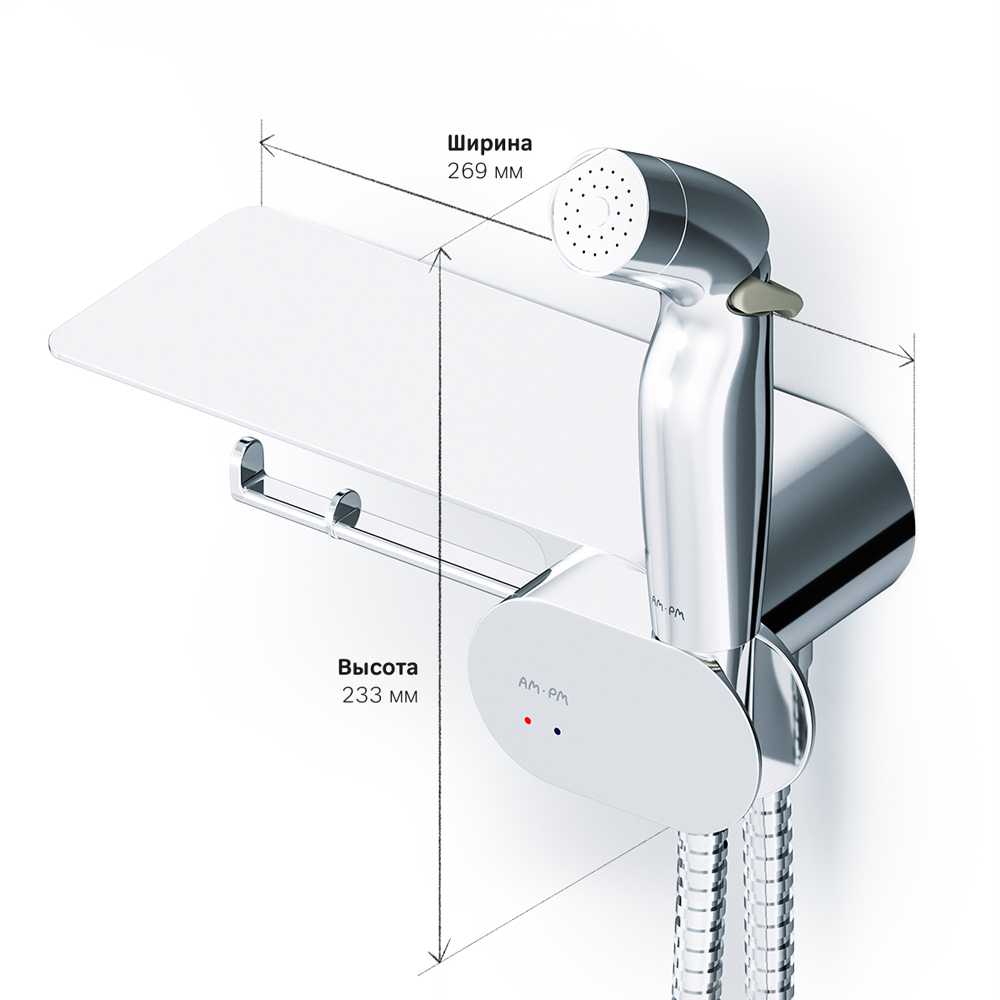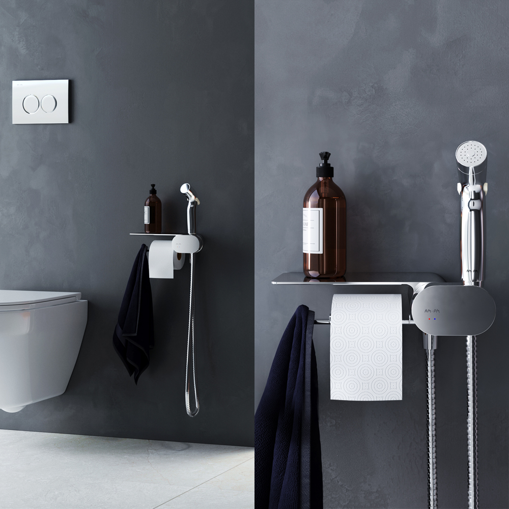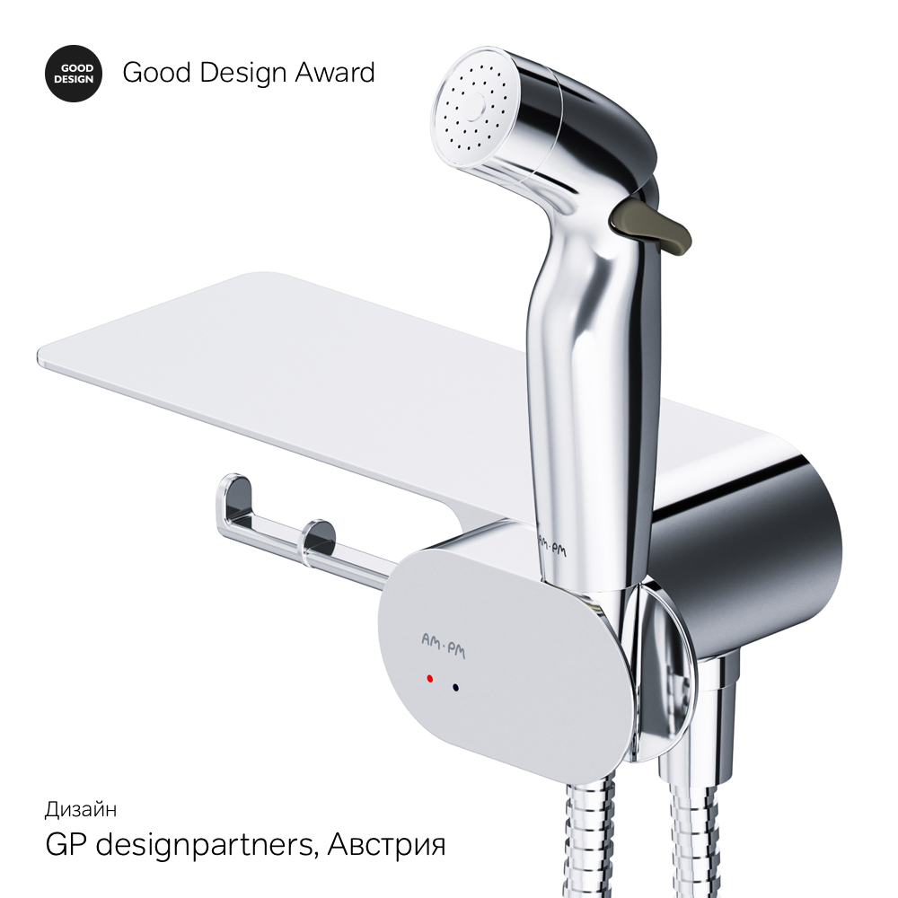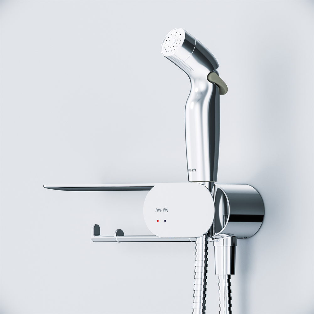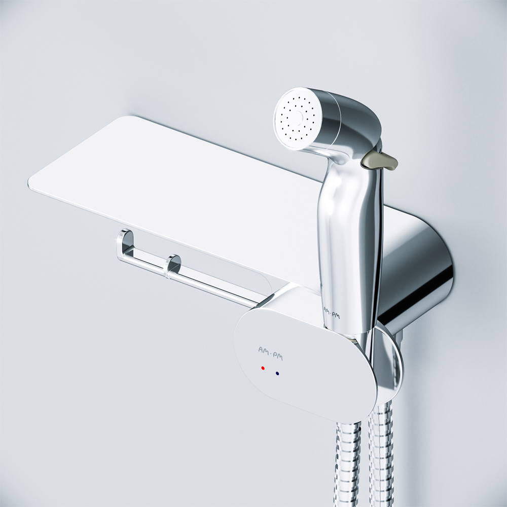 F0202600 Like, гигиенический набор со смесителем для душа с полкой, хром, шт.