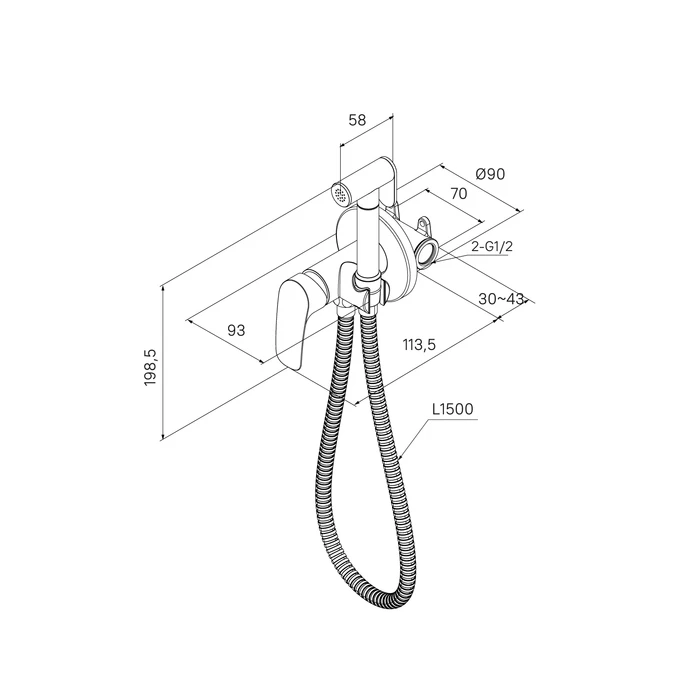 • Гигиеническая лейка из ABS-пластика и душевой шланг из ПВХ (1,5 м) идут в комплекте.