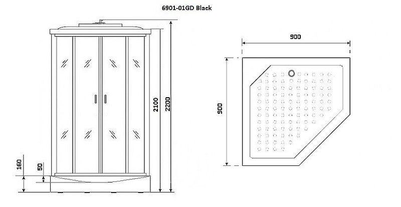 - Габариты кабины (ШхВхД): 900х2200х900 мм.