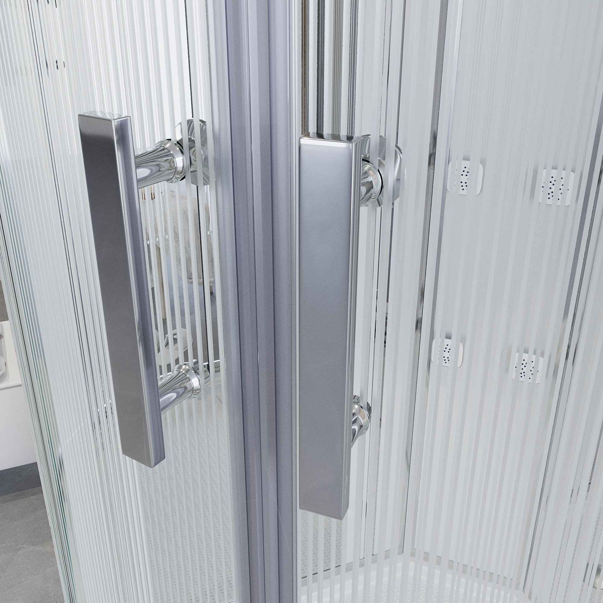Когда речь идет о создании идеальных условий для релаксации и красоты, необходимо погрузиться в мир нашей душевой кабины! Одна из самых эффектных форм кабин – четверть круга, который в сочетании с анодированным алюминиевым профилем в хроме и раздвижными дверьми, создает современный и чистый дизайн. Остекление в данной модели представлено закаленным прозрачным стеклом, которое имеет неповторимый рисунок и стиль. Задняя стенка выполнена из закаленного зеркального стекла.