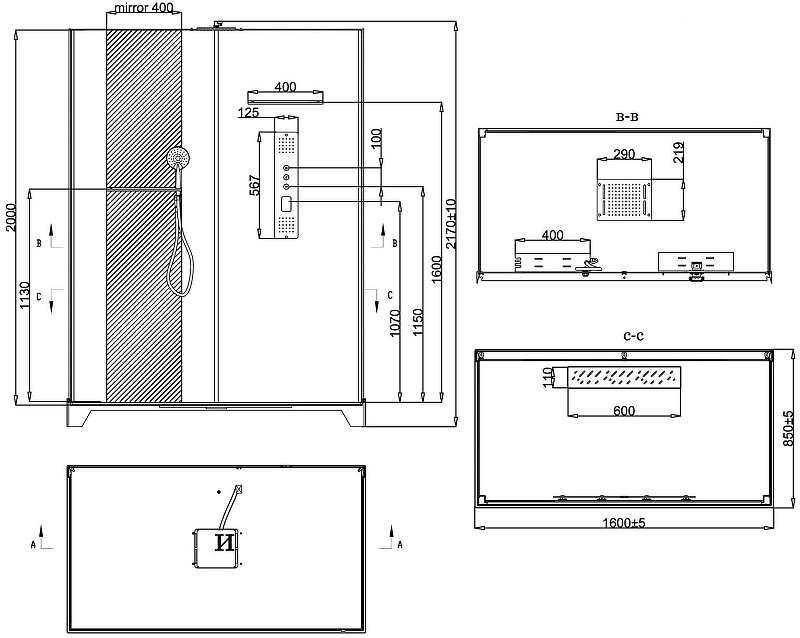 - Душевая кабина.