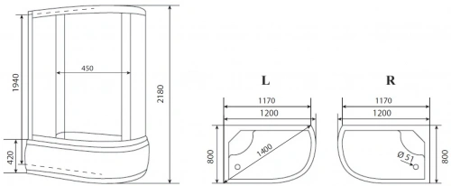 Душевая кабина Timo eco 120*80*218 (TE-0720L)