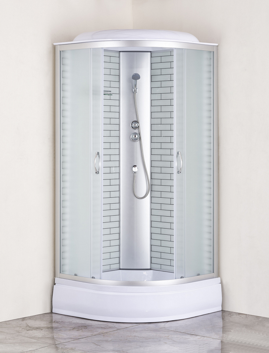 Душевая кабина Loranto 100х100х215 поддон 25 см белый кирпичный узор, стекло 4 мм профиль хром (CS-6610-25FW 100)